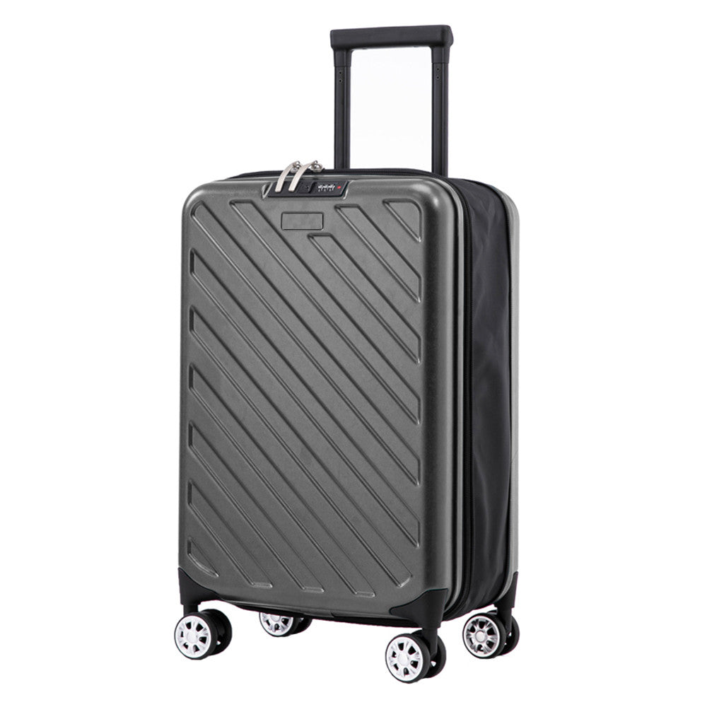Aspectul gri închis, minimalist, este ideal pentru călătorii de afaceri sau vacanțe. Compact, dar spațios – perfect pentru cei care apreciază funcționalitatea și stilul.